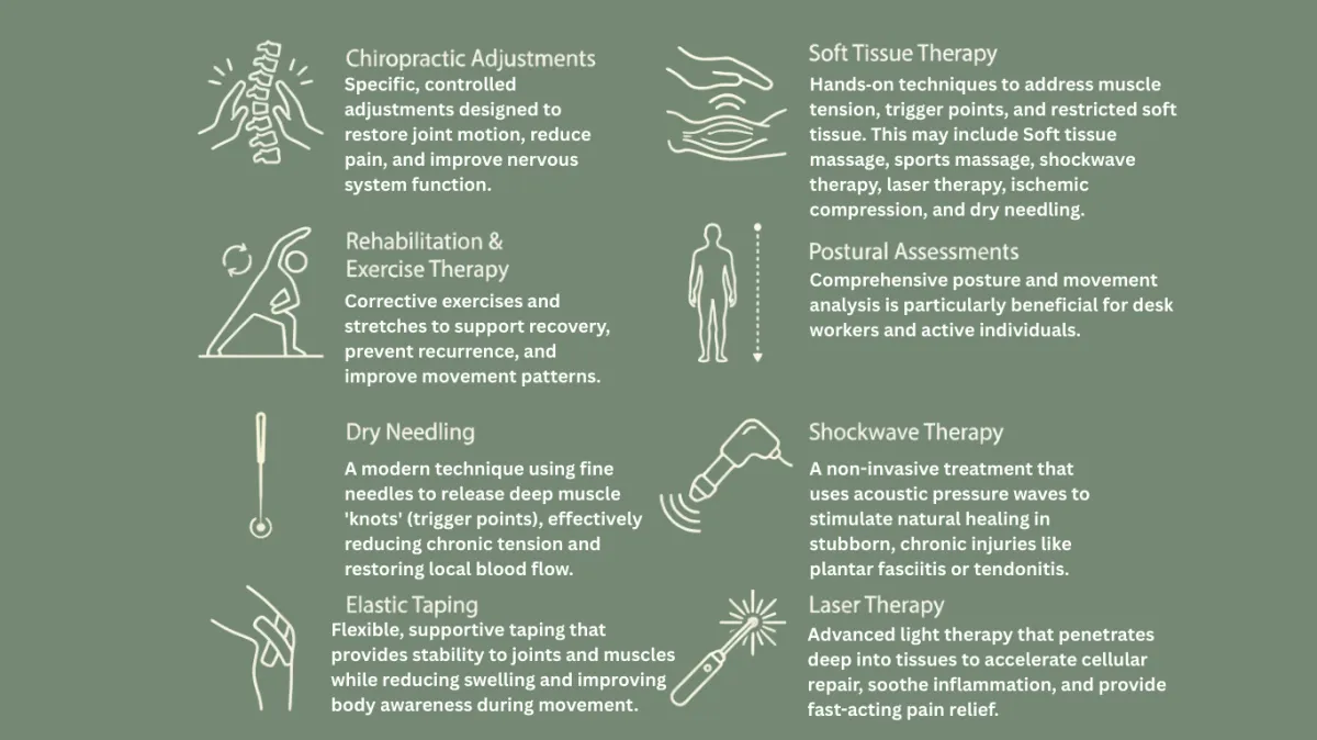 From acute disc pain to chronic postural ache. Back pain is one of the most common reasons patients seek chiropractic care. Treatment focuses on improving joint mobility, reducing muscle tension, and restoring healthy movement patterns.